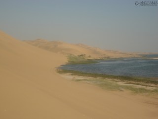 Walvis Bay is a relatively crowded place compared to Swakopmund. The main reason people go to there is because of the view it has to offer. It has the beach with lots of cafes around. But Walvis Bay is the point from which people are taken to the Sandwich Harbour. The Sandwich Harbour, also known as the Skeleton Coast, is where the grand sand dunes meet the Atlantic Ocean, creating the most perfect photographic scene. This is a very rare occurrence.